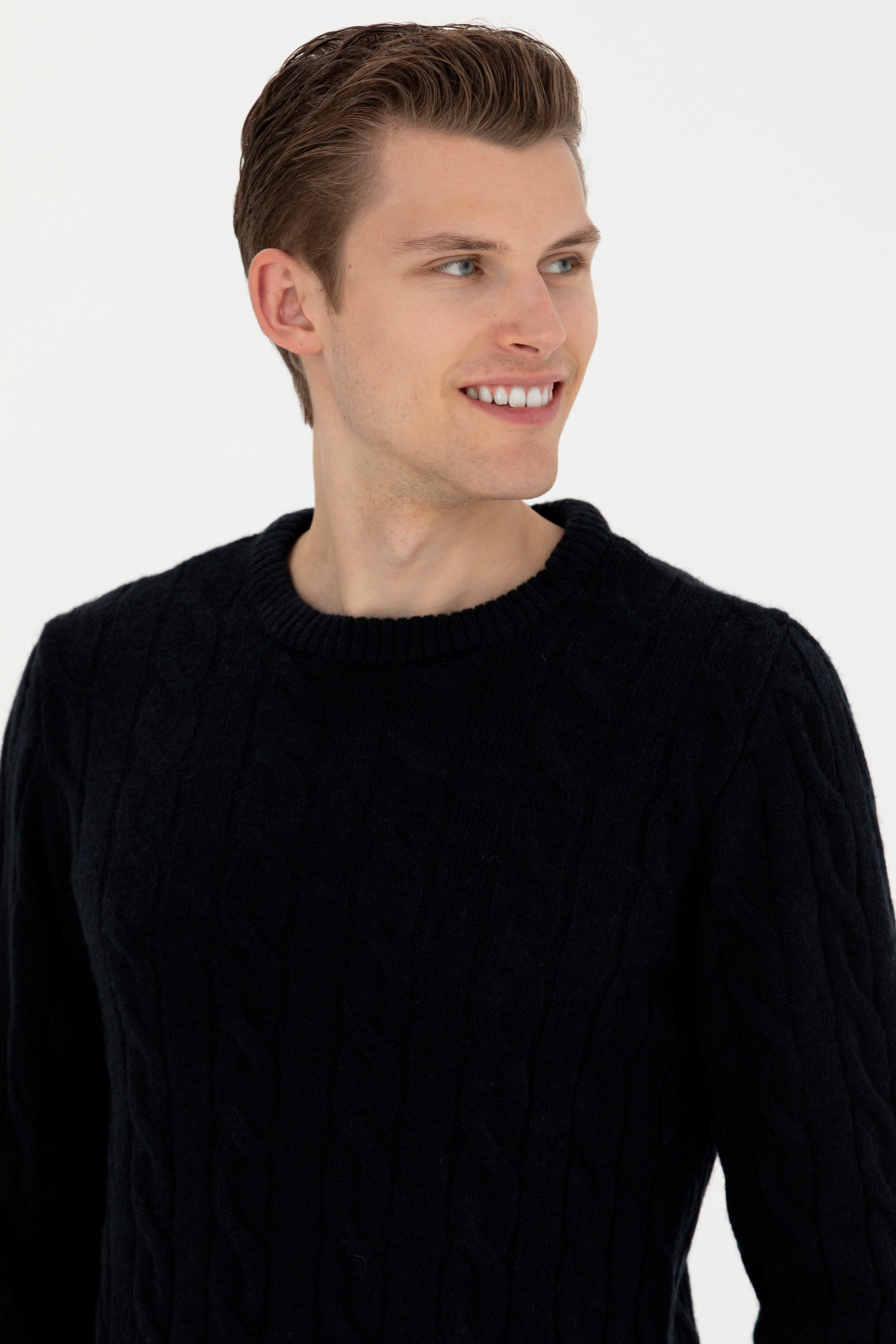 Classic sweater with a rope design and a straight cut. Pairs well with jeans or classic trousers for a simple and warm look on cold days.