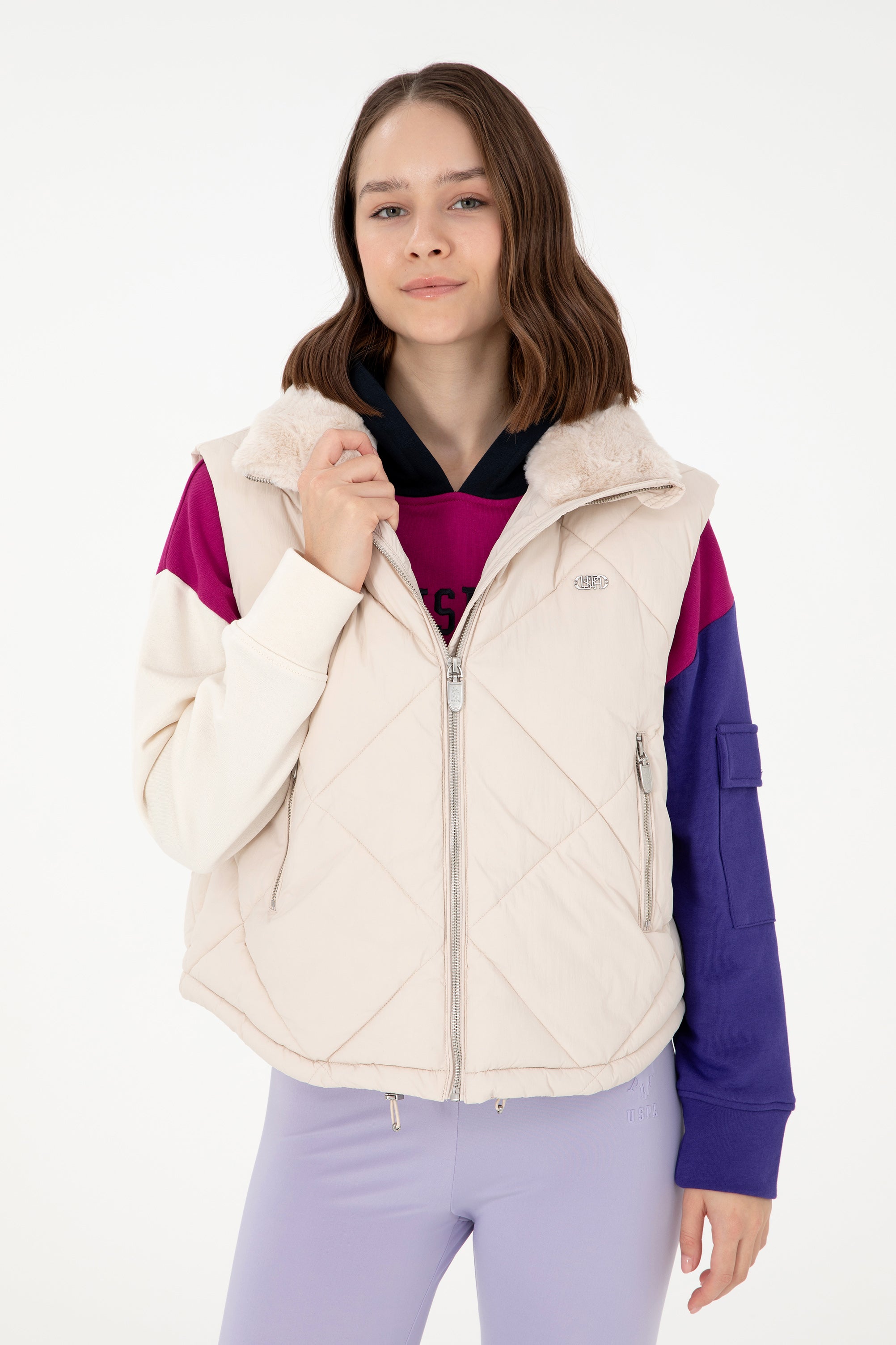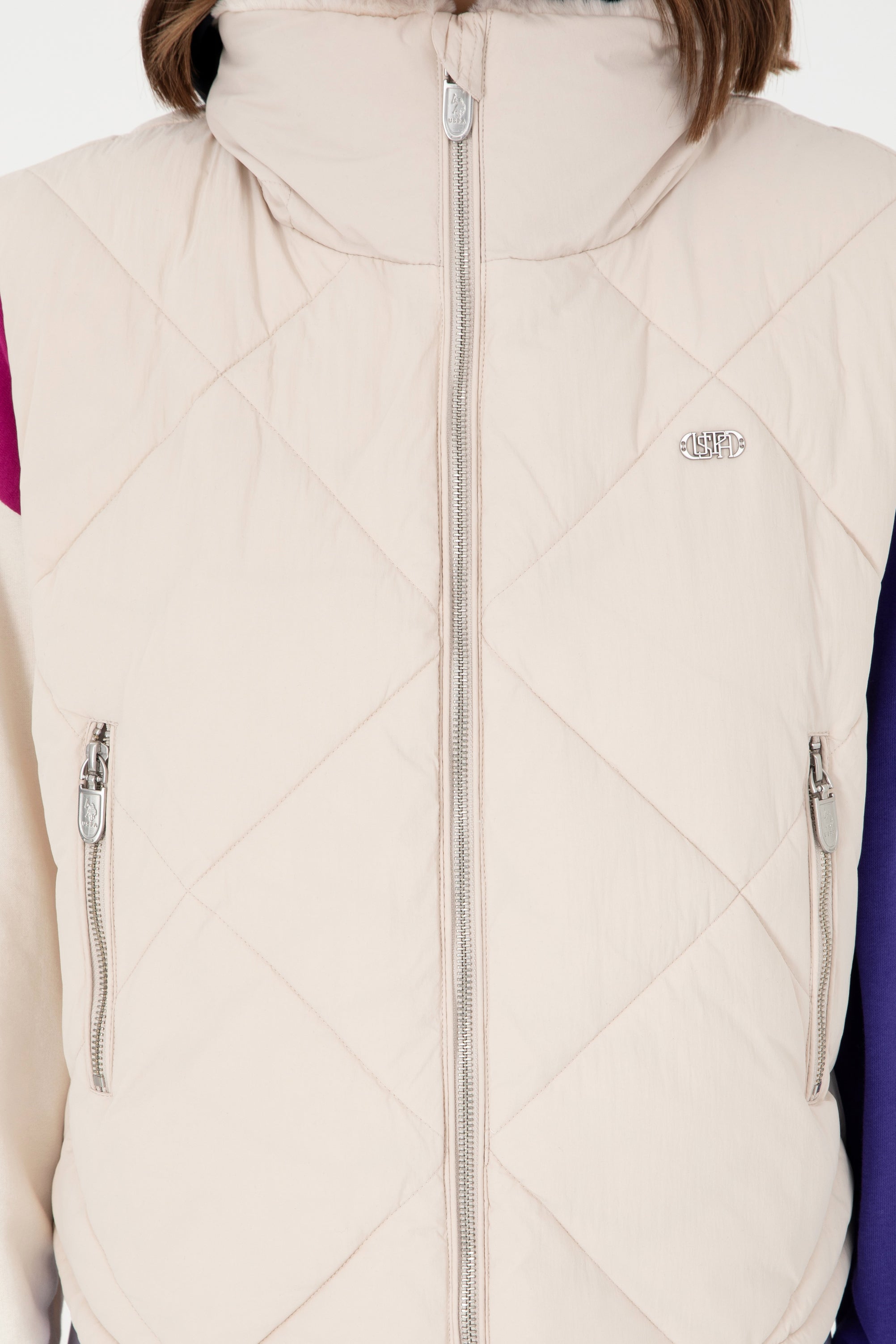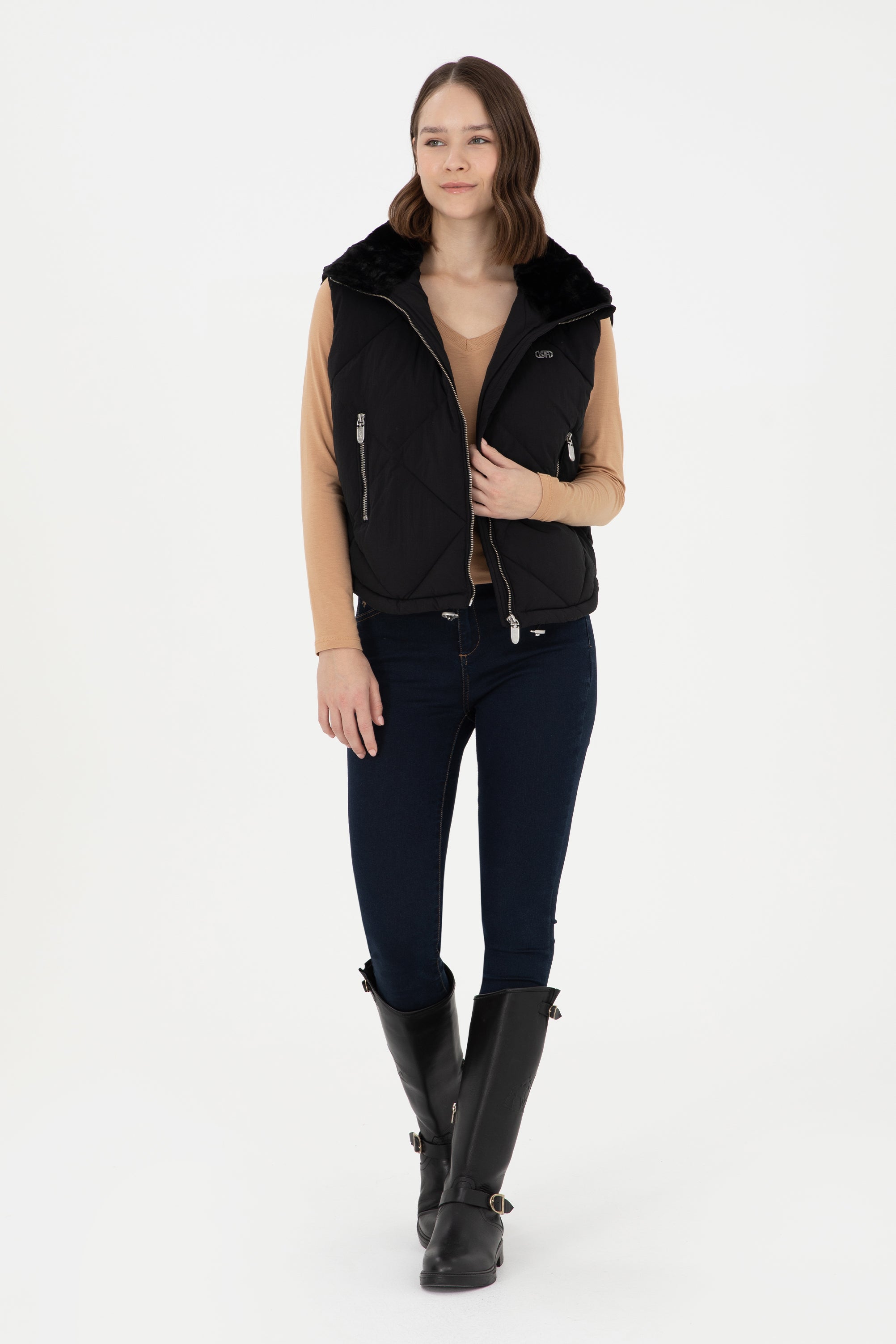 Jelek me dizajn të mbushur dhe qëndisje fine në pjesën e përparme, i pajisur me jakë prej gëzofi dhe xhepa me zinxhir. Praktik për veshje shtresë mbi bluza apo triko, i përshtatshëm për ditë të freskëta. Kombinohet mirë me xhinse dhe çizme për një pamje të rregullt dhe stil modern.