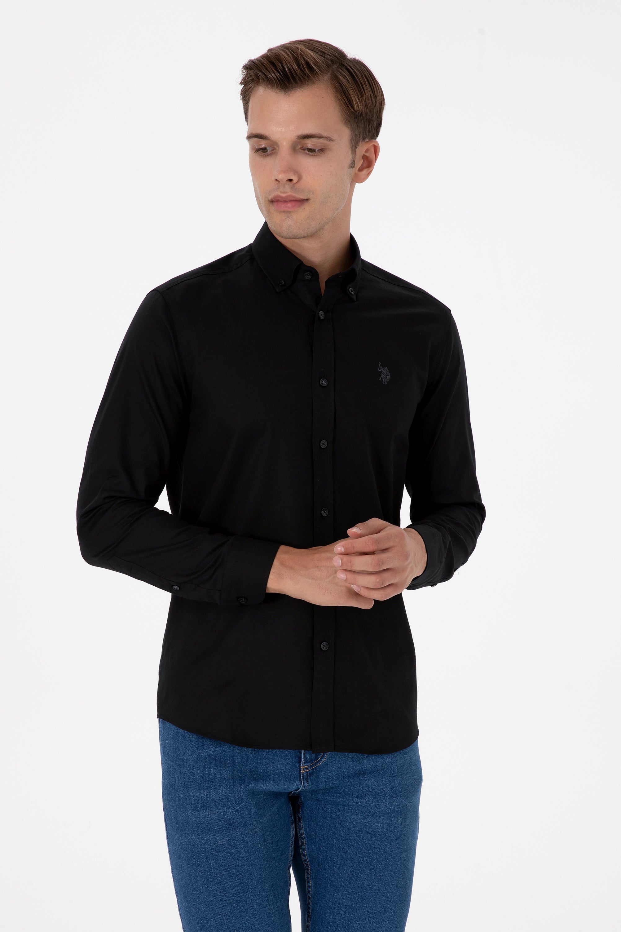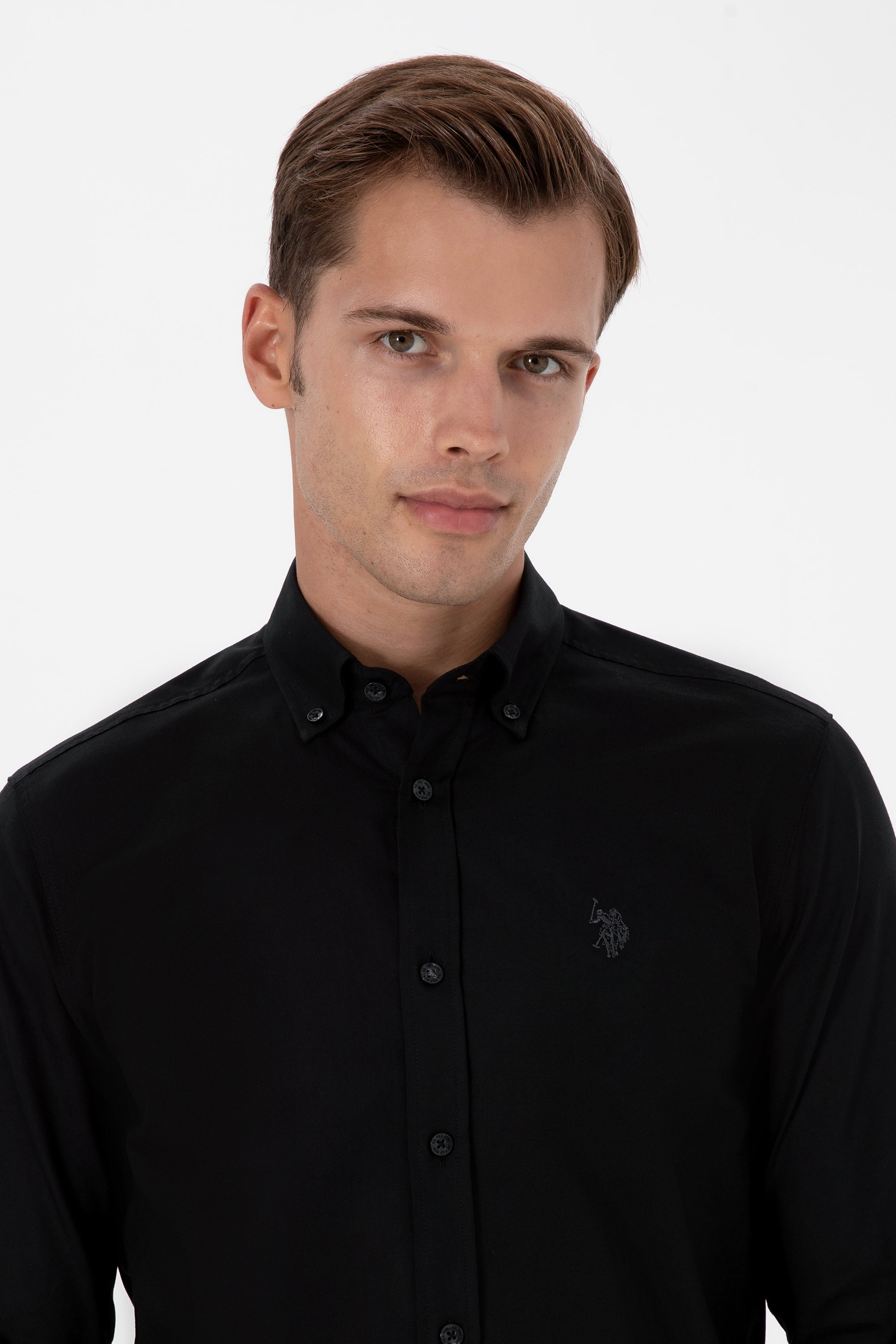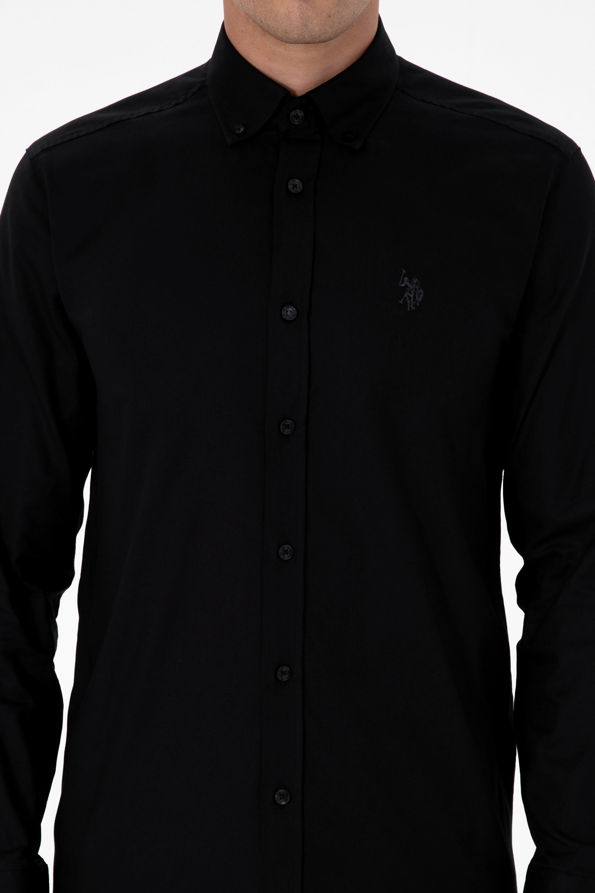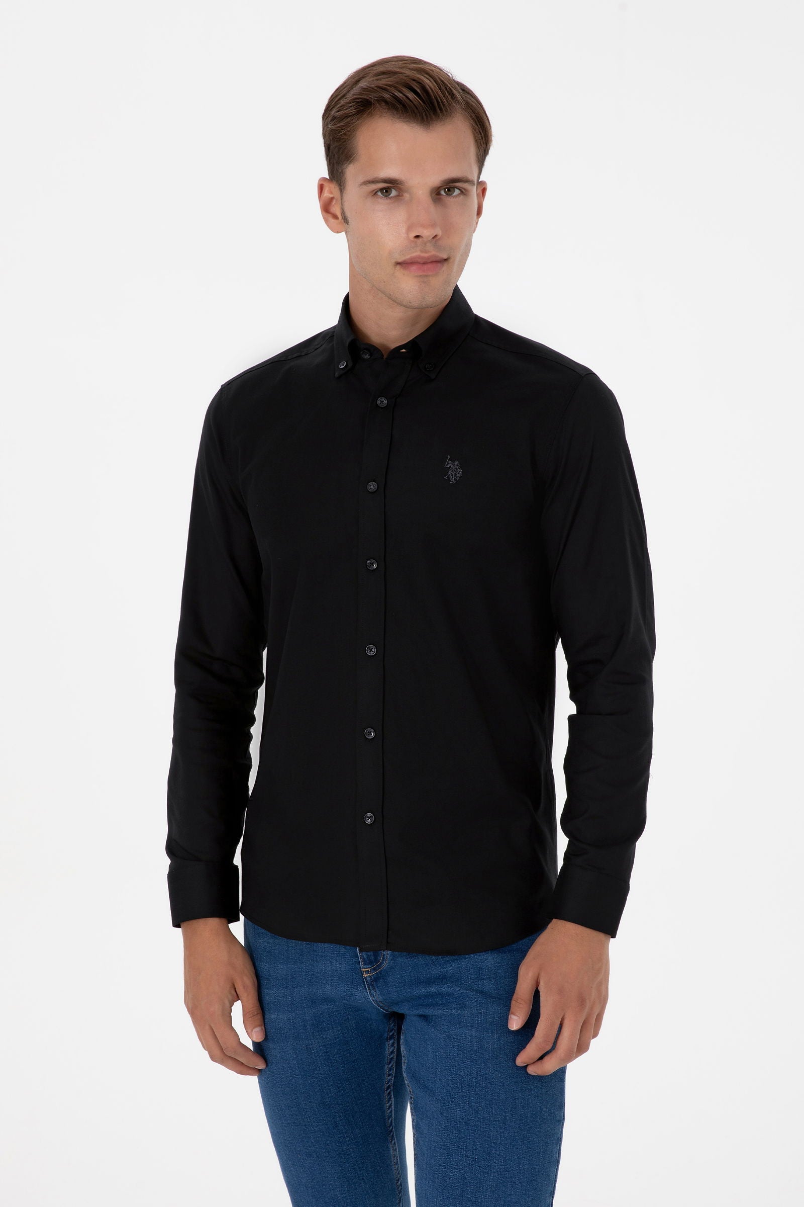 Këmishë klasike bazike me mëngë të gjata dhe jakë me kopsë. Dizajn i pastër dhe i rregullt që ofron pamje elegante dhe praktike, e përshtatshme si për ambient pune, ashtu edhe për kombinime të përditshme, e zbukuruar me logon njëngjyrëshe me kalorësin USPA në pjesën e përparme. Një zgjedhje e domosdoshme në garderobën mashkullore.