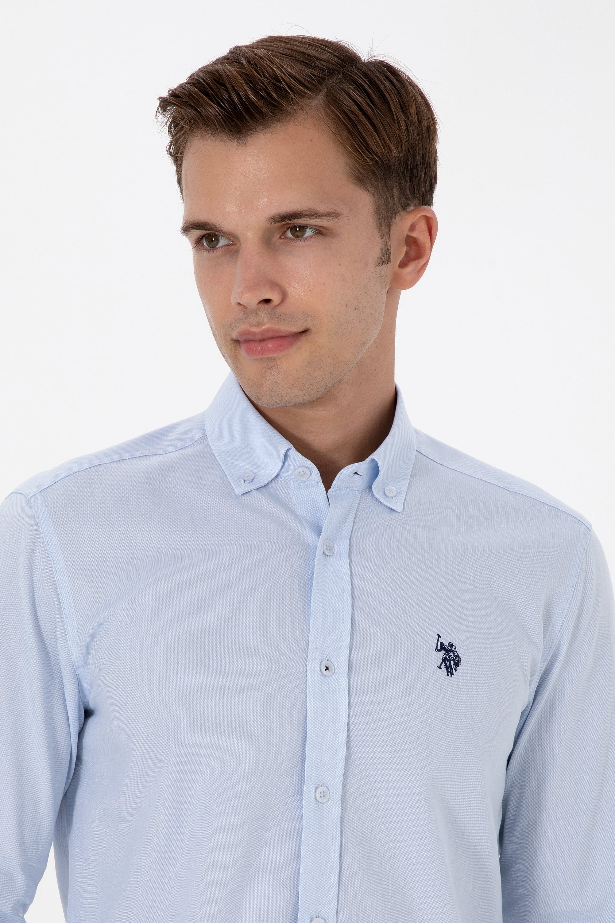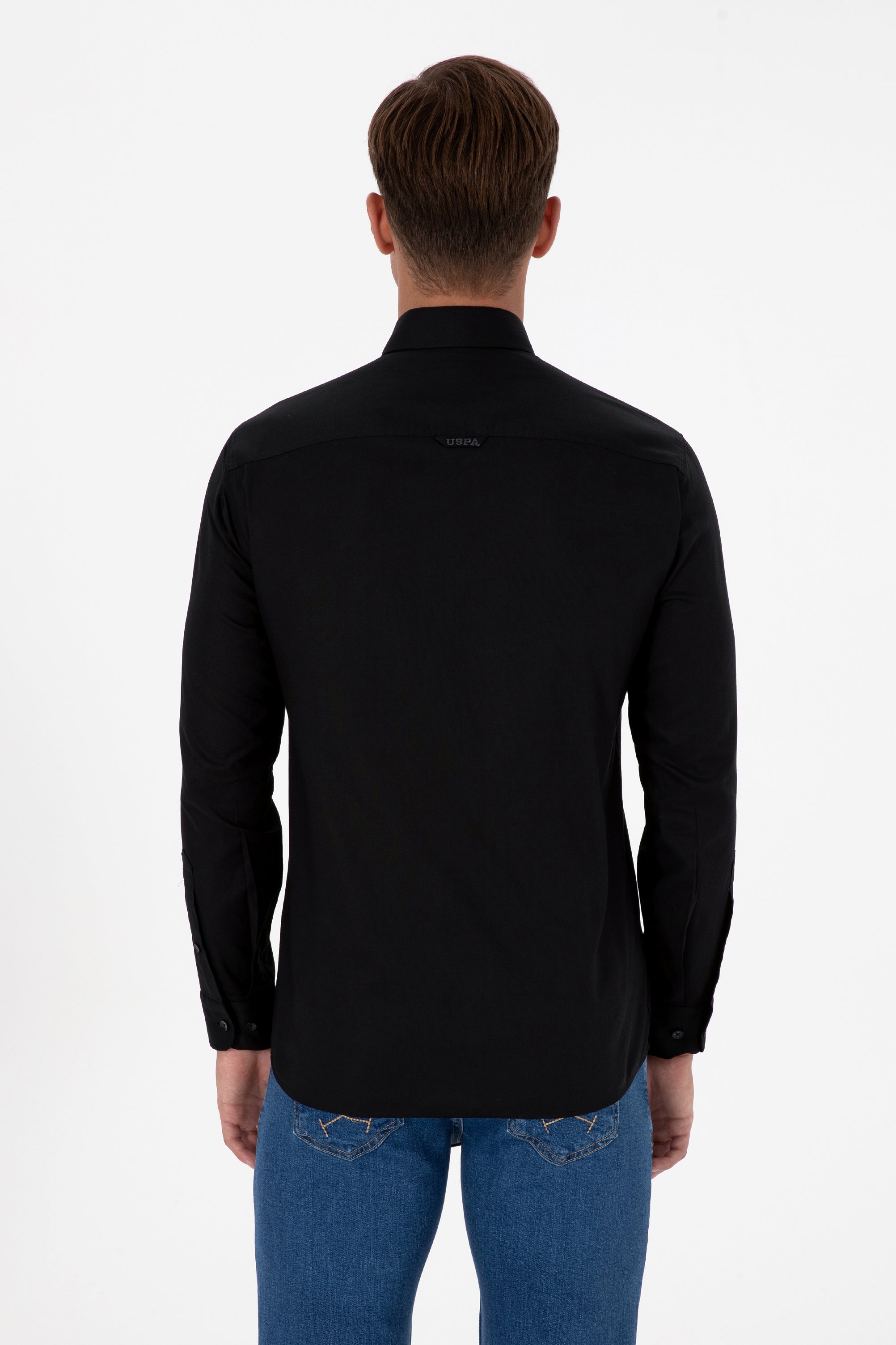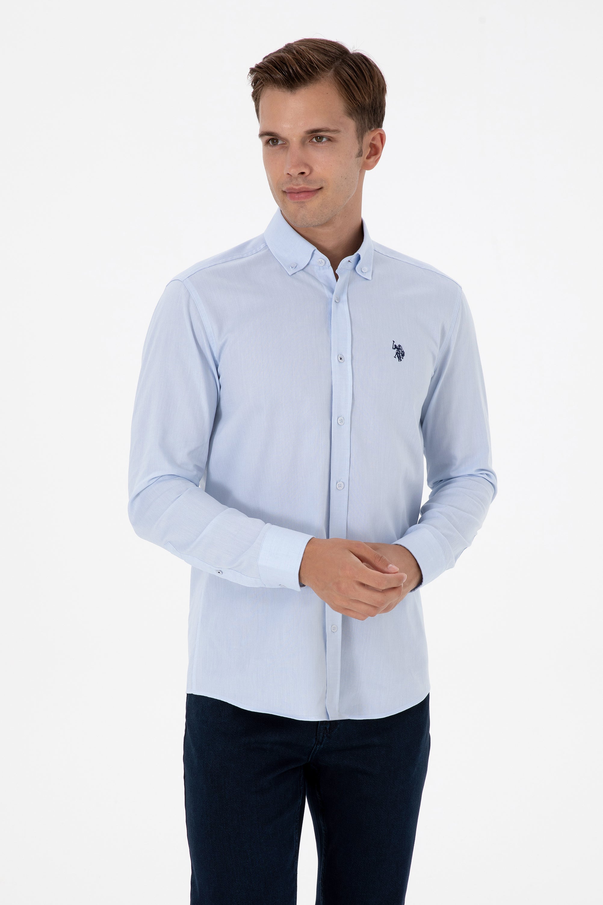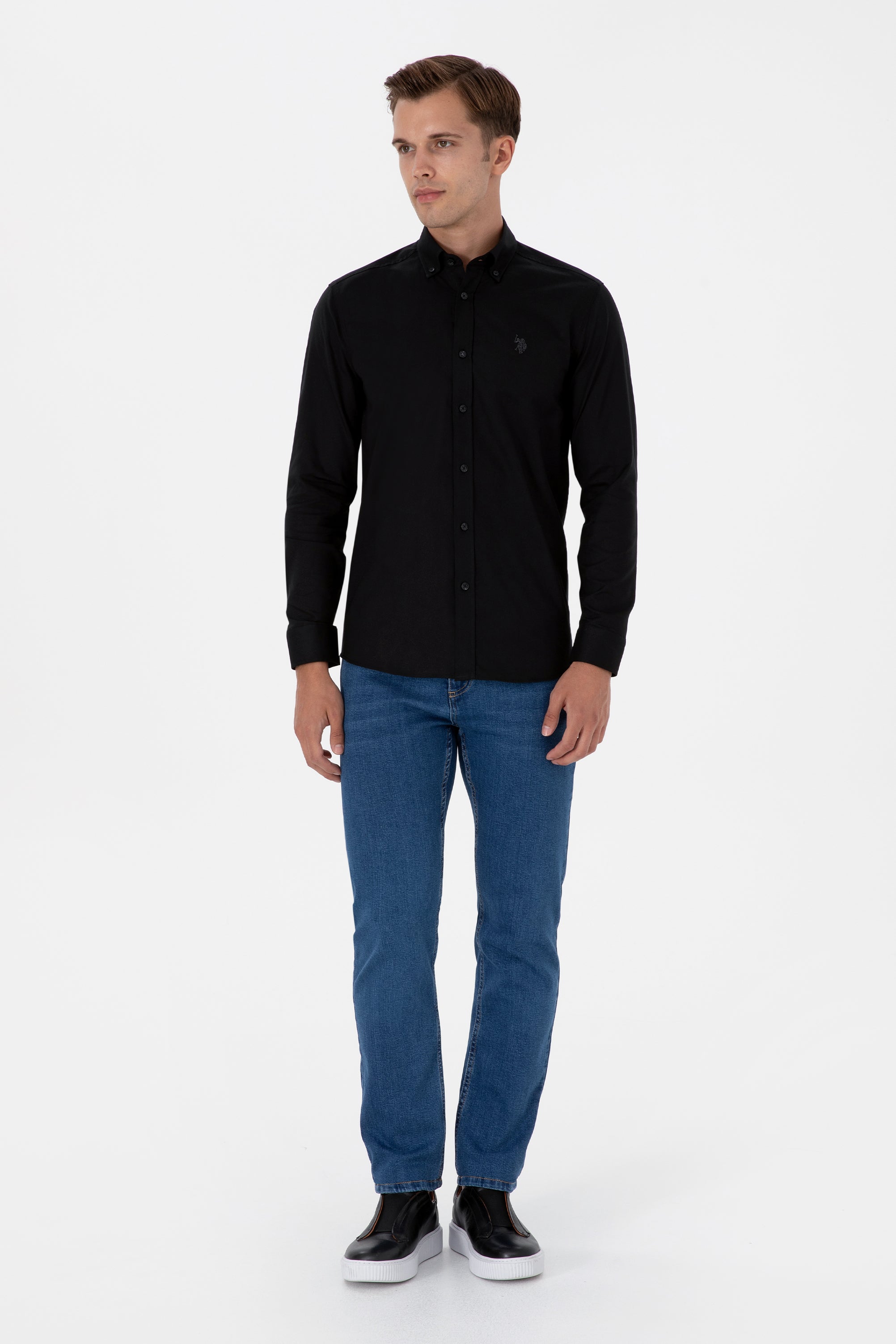 Këmishë klasike bazike me mëngë të gjata dhe jakë me kopsë. Dizajn i pastër dhe i rregullt që ofron pamje elegante dhe praktike, e përshtatshme si për ambient pune, ashtu edhe për kombinime të përditshme, e zbukuruar me logon njëngjyrëshe me kalorësin USPA në pjesën e përparme. Një zgjedhje e domosdoshme në garderobën mashkullore.