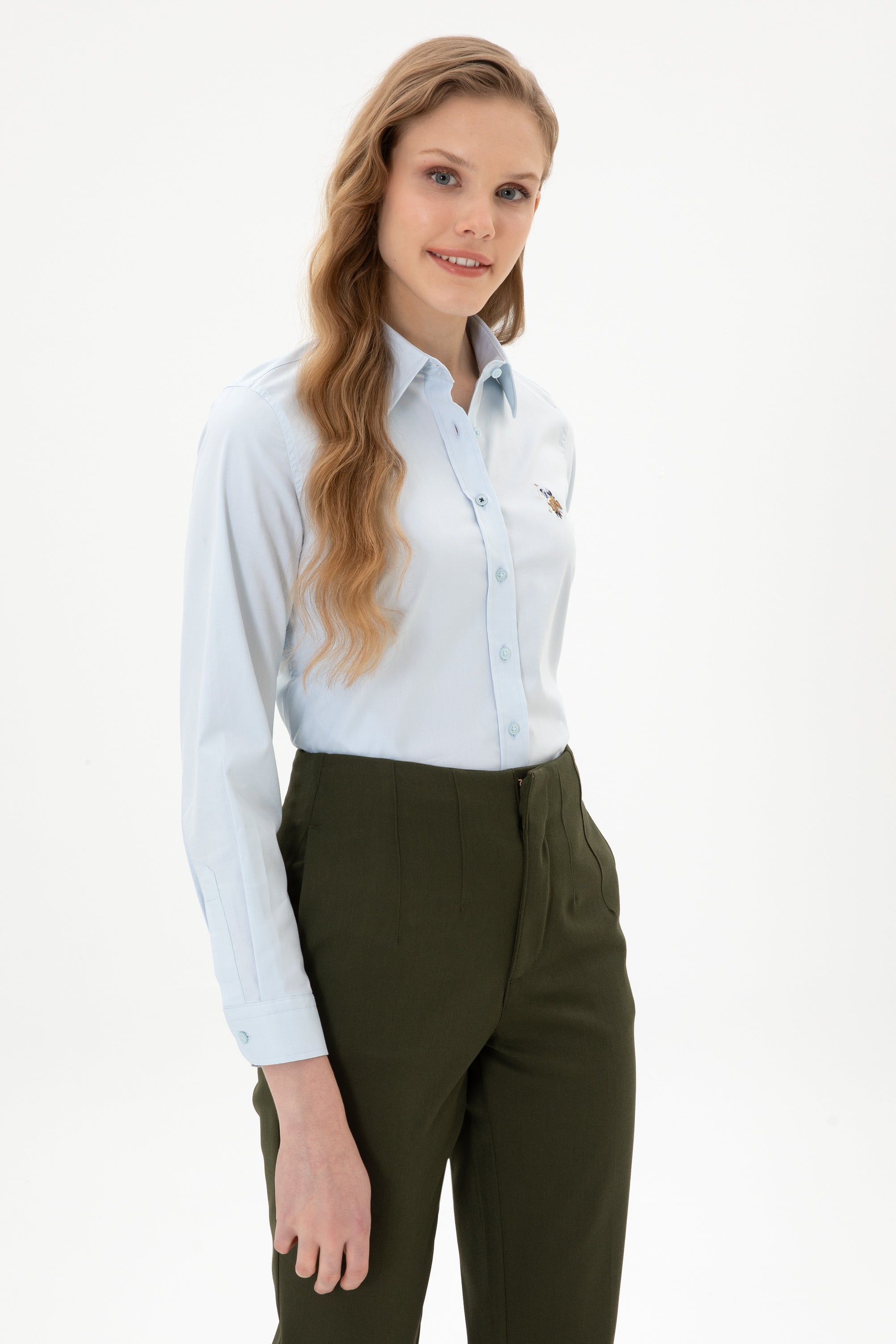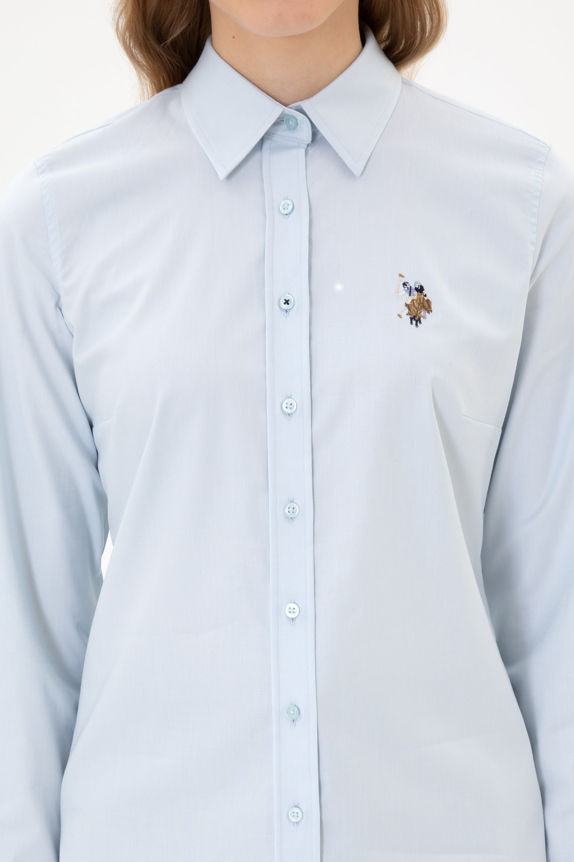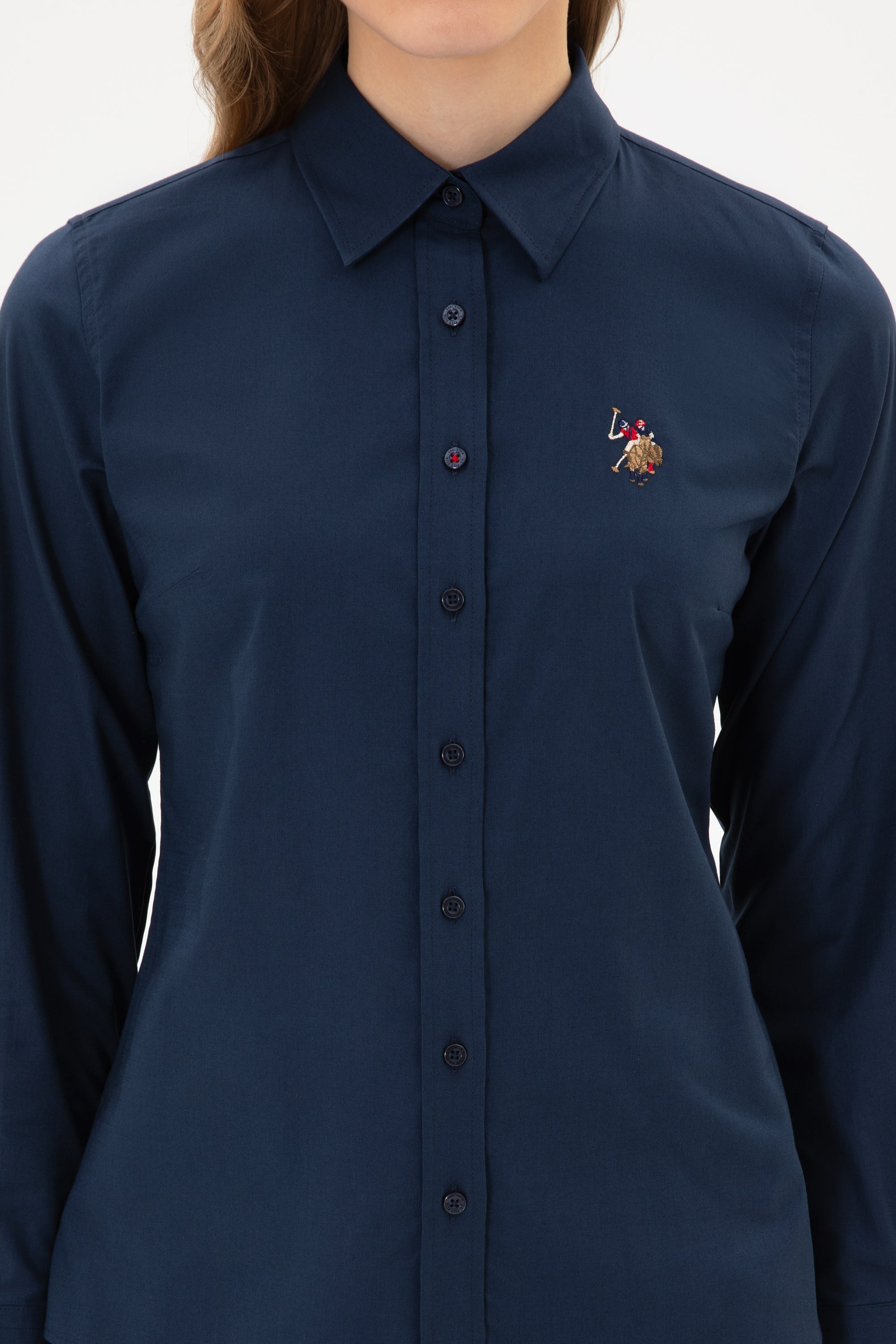 Këmishë klasike dhe elegante me mëngë të gjata dhe dizajn të pastër. Modeli i thjeshtë ofron një pamje të rafinuar dhe profesionale, ideale si për punë, ashtu edhe për kombinime të përditshme. E zbukuruar me logon klasike të qëndisur me ngjyrat tradicionale USPA në pjesën e përparme, që i shton një detaj elegant dhe dallues.