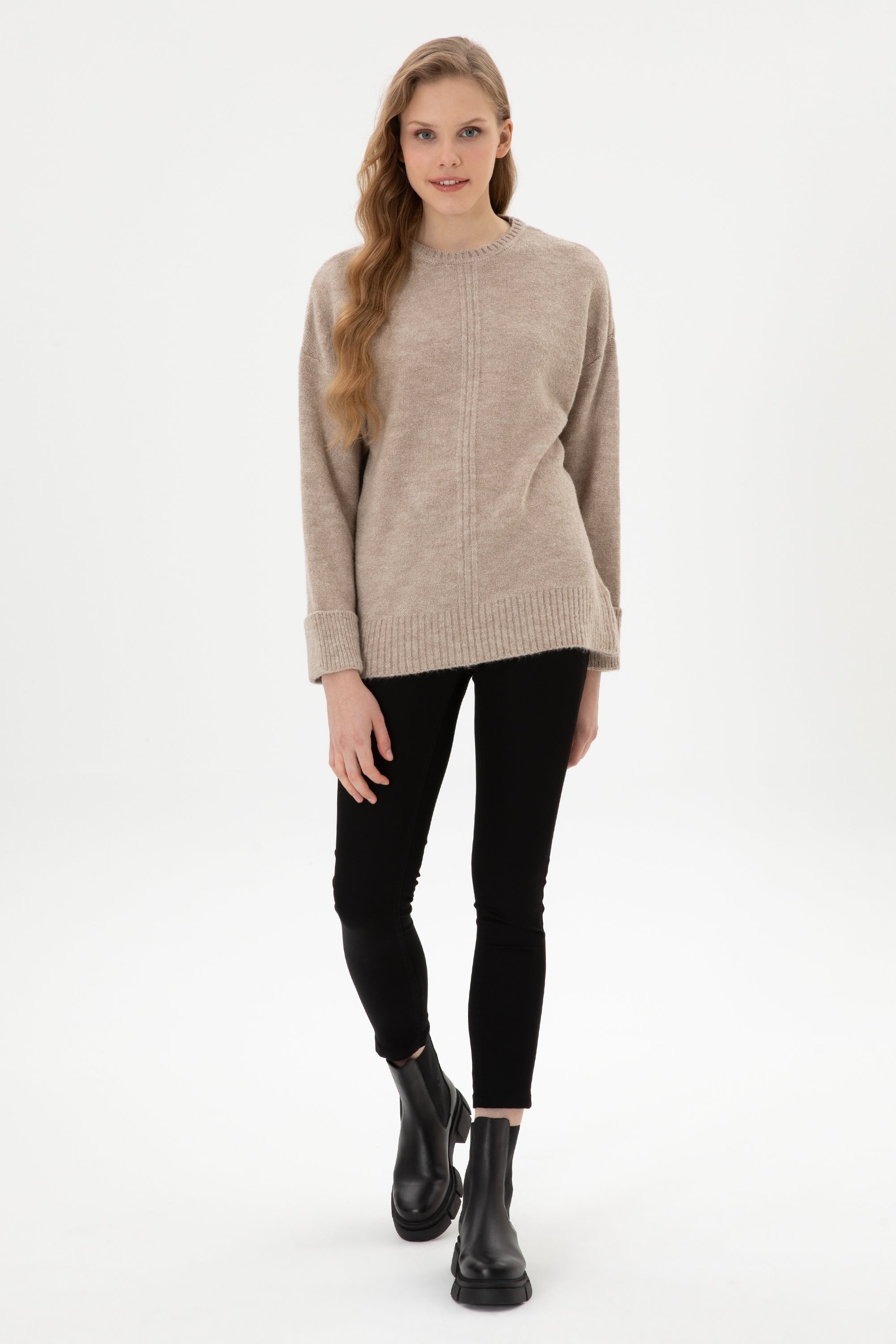 Pulovër vintage me jakë rrumbullake dhe prerje të lirshme. Detajet e punimit të trashë në fund dhe mëngë i japin një pamje klasike që kthehet gjithmonë në modë. Një zgjedhje ideale për ditë të ftohta, që vishet lehtësisht si me xhinse ashtu edhe me pantallona elegante.