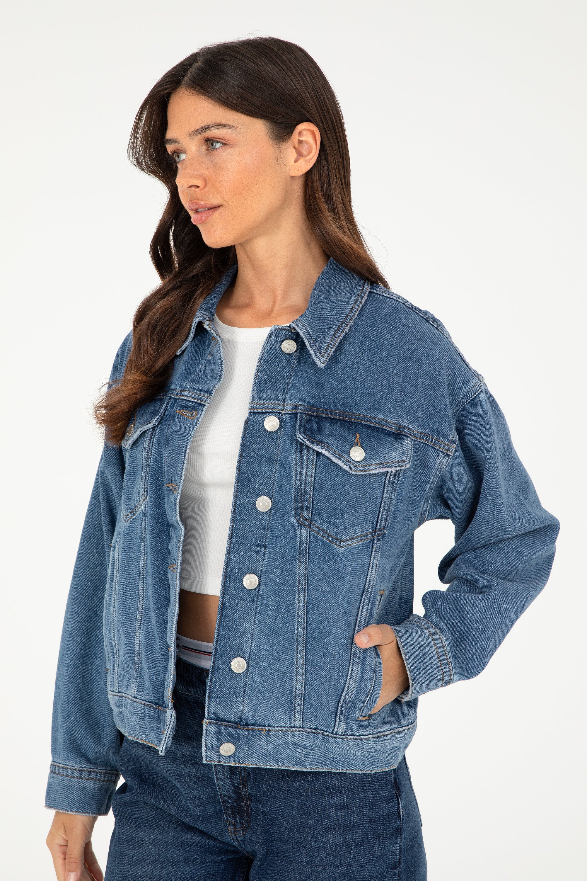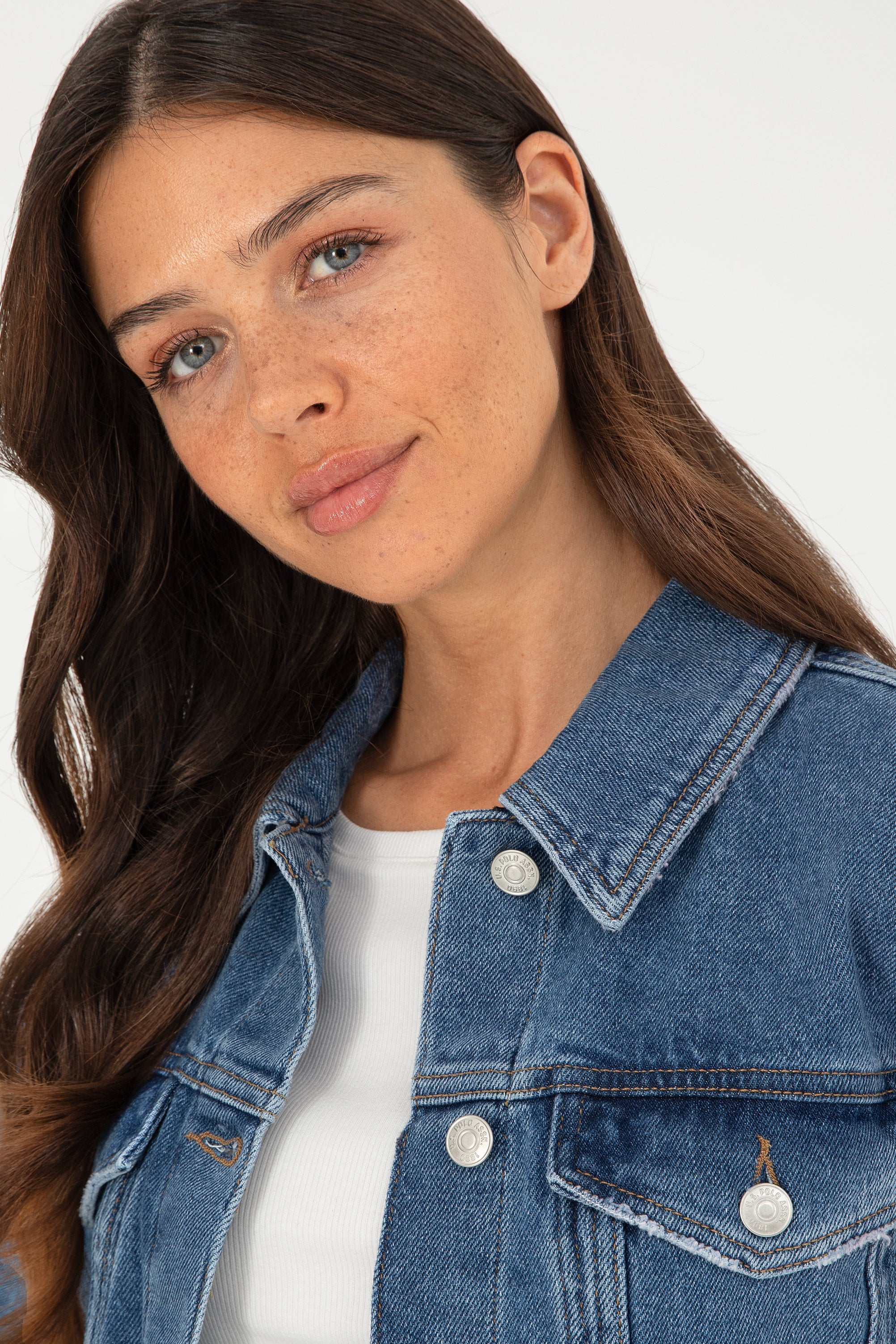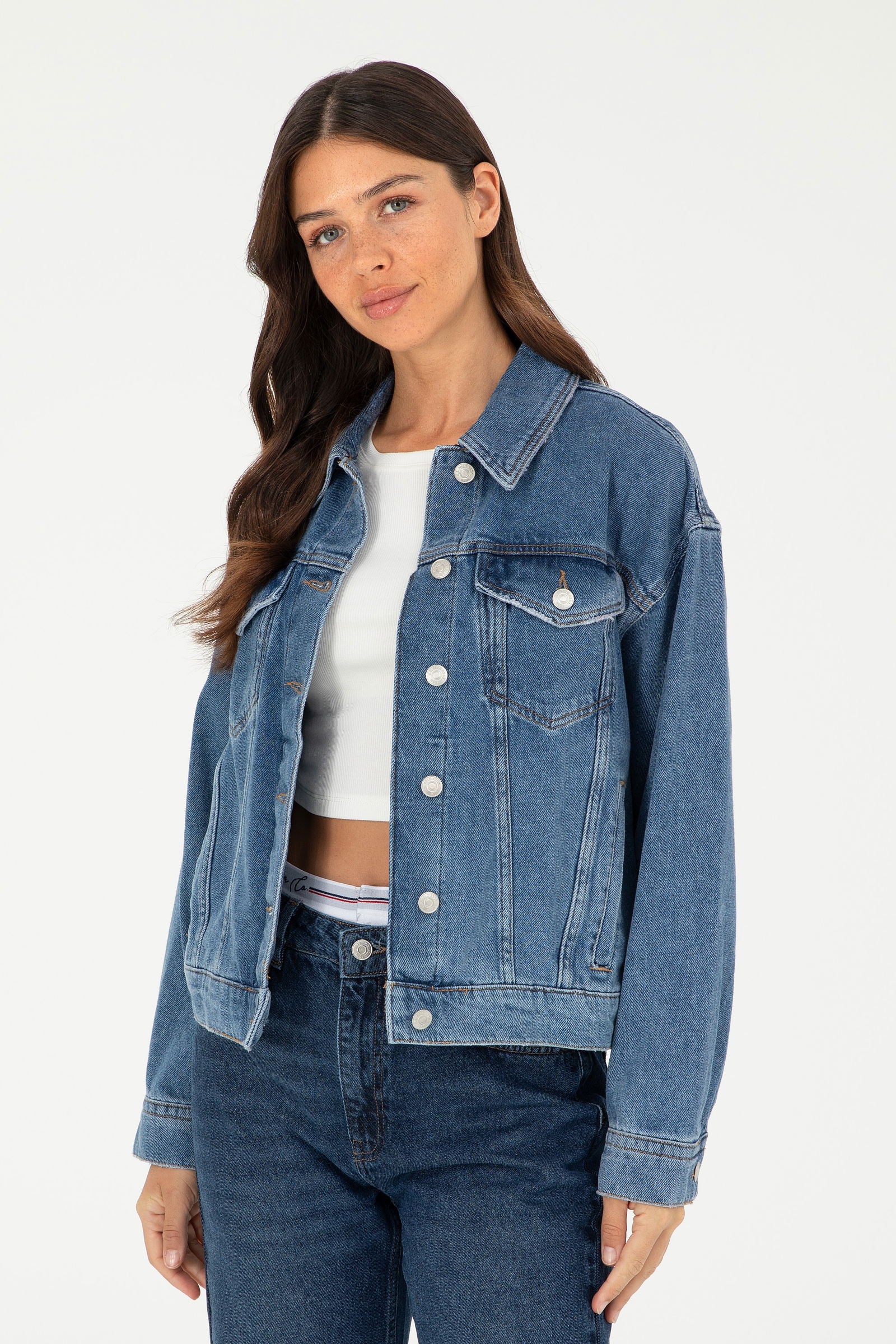 Xhaketë xhins me prerje të drejtë dhe stil urban. Lehtësisht e kombinueshme me xhinse apo pantallona dhe ideale për ditët e freskëta. Praktike, e rehatshme dhe gjithmonë me stil.